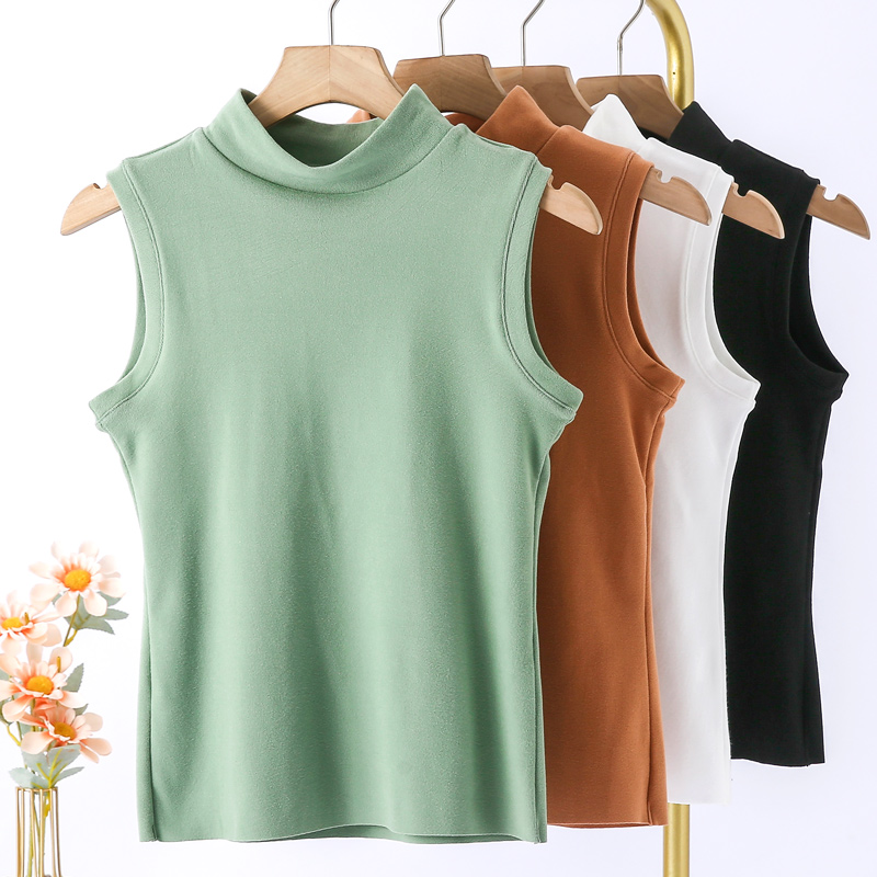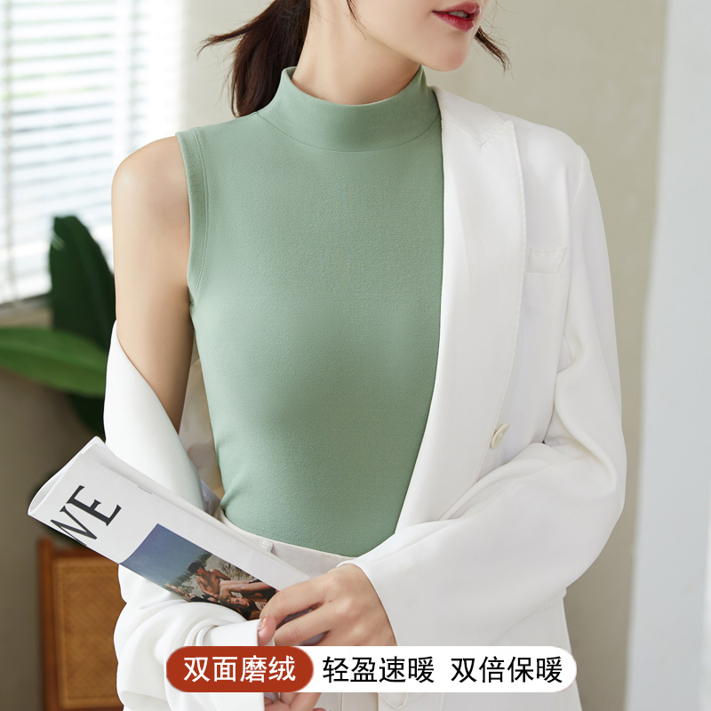 双面德绒半高领无痕保暖内衣背心女加绒加厚内穿秋冬内搭打底秋衣