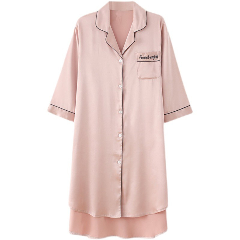 睡裙可外穿 宽松冰丝衬衫 性感睡衣春秋女2025新款 夏纯欲男友风大码