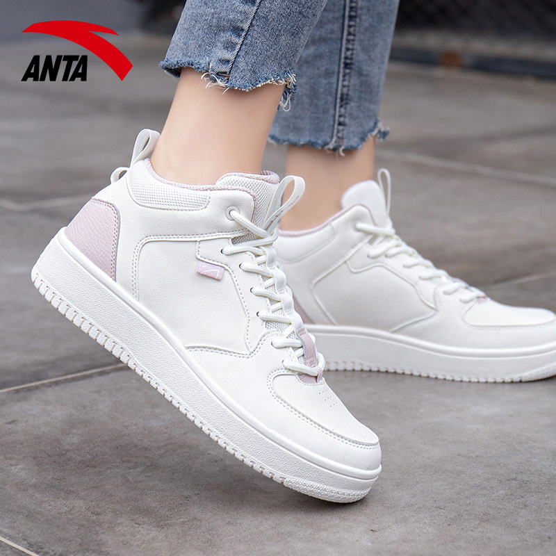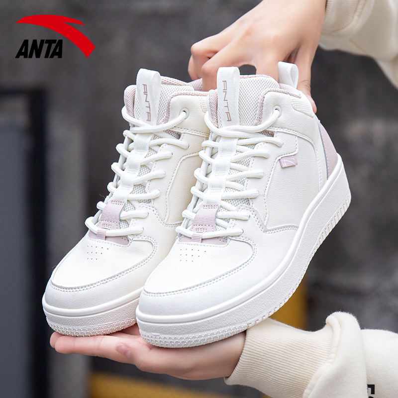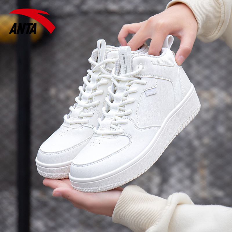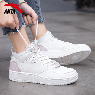 女鞋 官方旗舰学生轻便休闲鞋 2025秋季 皮面高帮小白鞋 新款 安踏板鞋