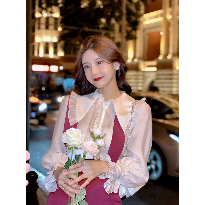 年新款 秋季 韩版 娃娃领灯笼上衣修身 半身裙 韩语琳衬衫 袖 女套装