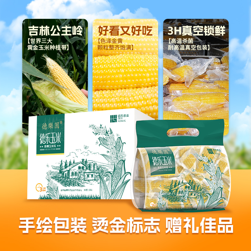 德乐圆经典 粘玉米18段粗粮早餐 东北黄糯玉米有机玉米新鲜真空包装