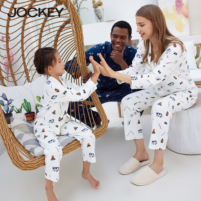 两件套 女士纯棉舒适轻薄长袖 Jockey亲子装 印花儿童睡衣家居服套装