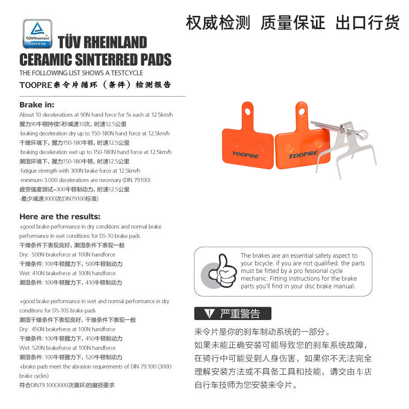 TOOPRE电动代驾车陶瓷刹车片山地自行车碟刹片滑板车全金属来令片