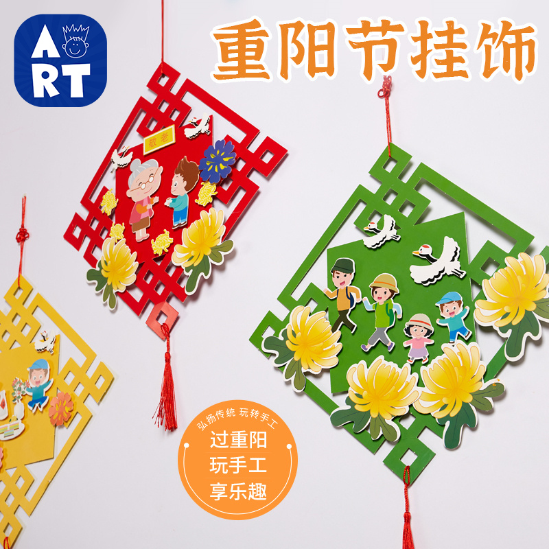 重阳节手工diy挂饰儿童粘贴制作装 饰环创敬老活动机构幼儿园材料