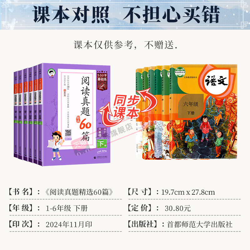 53小学生基础练一二三四五六年级 训练大全53积累与默写上下册 53基础练小学语文阅读真题60篇阅读真题100篇全一册通用版 53句式