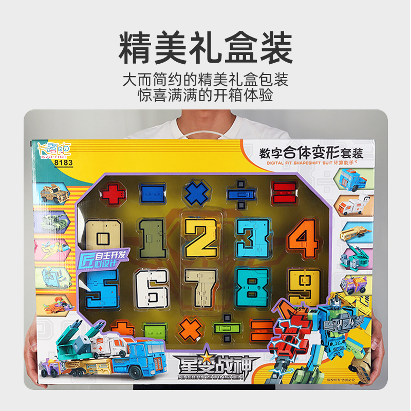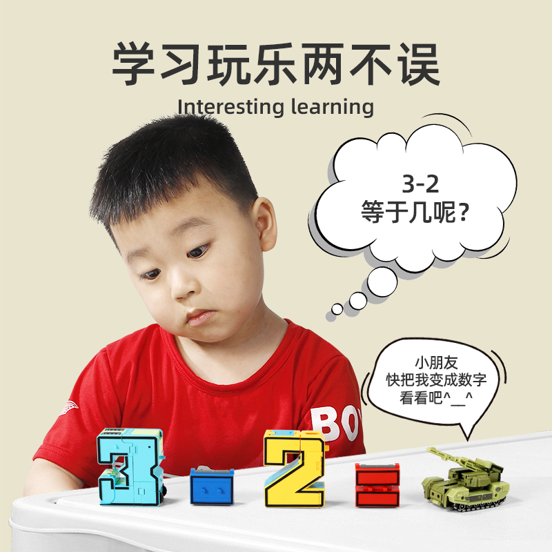 儿童益智数字变形机器人男孩百变合体拼装 玩具汽车人字母积木套装
