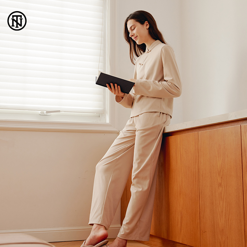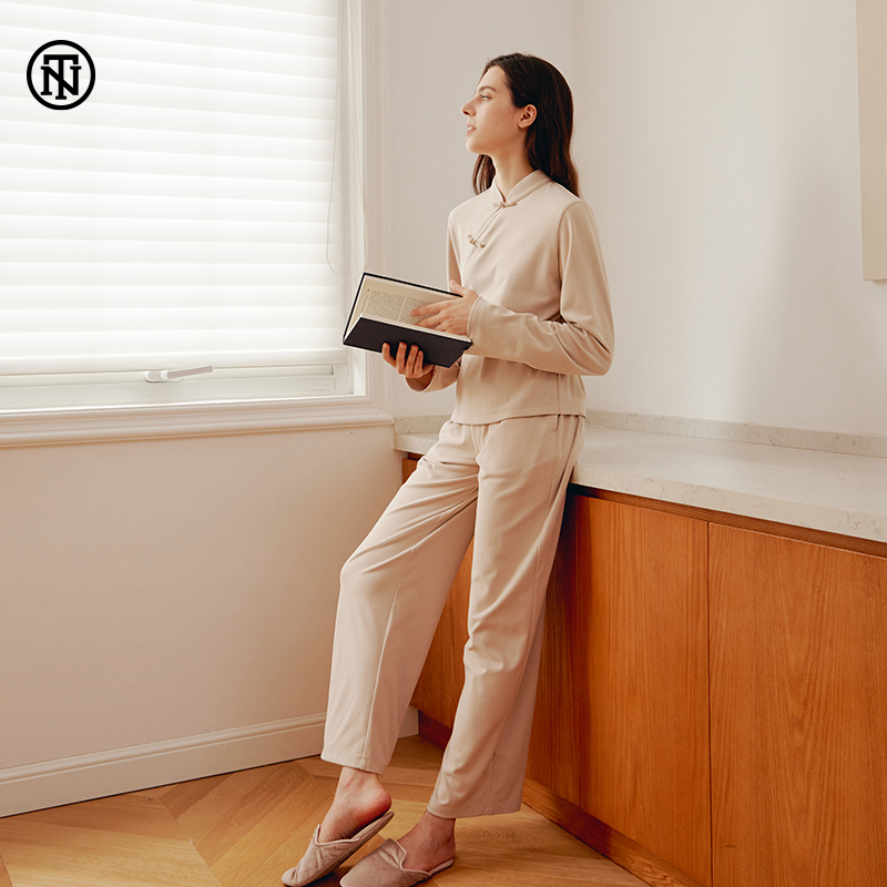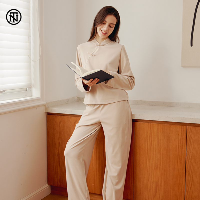NoirTease奈黎诗春秋复古磨毛薄绒针织国风家居服睡衣女两件套冬