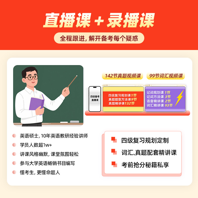 星火英语四级英语考试真题备考2025年12月四级真题试卷通关学习资料大学英语cet4四六级词汇单词书阅读听力作文翻译专项训练模拟题