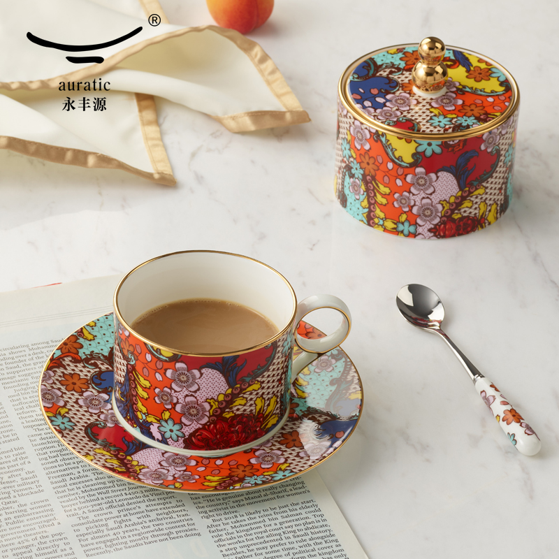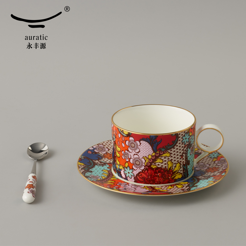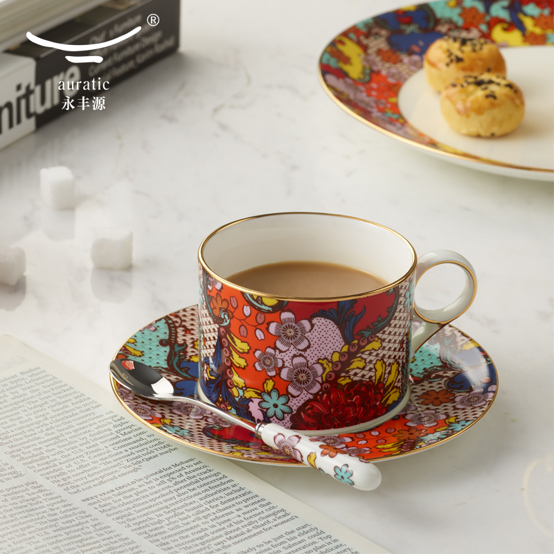 国瓷永丰源繁花似锦3头咖啡杯碟200ml 陶瓷水杯下午茶杯礼盒装