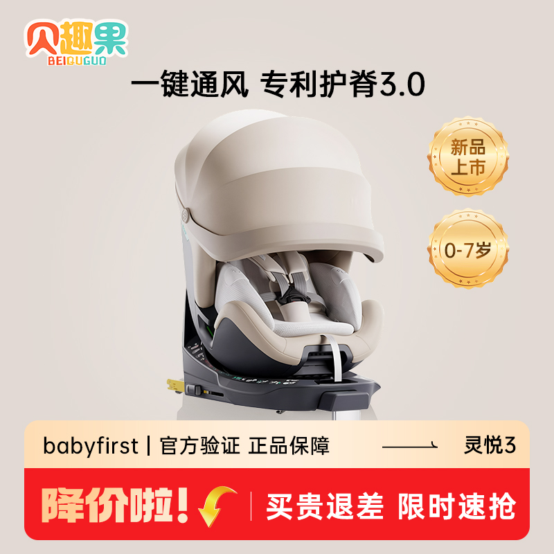 babyfirst宝贝第一灵悦3 7岁宝宝汽车座椅防晒智能通风 安全座椅0