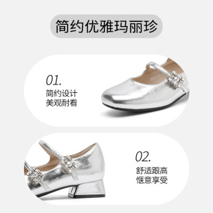 配裙子粗跟浅口单鞋 大东玛丽珍鞋 高跟小皮鞋 2025春夏新款 0108 女鞋