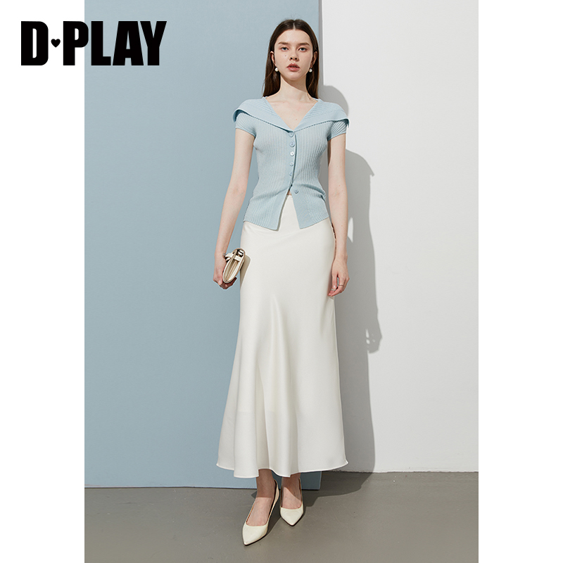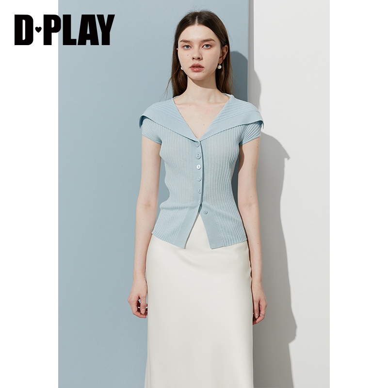 新款 气质修身 蓝色上衣女莱赛尔短袖 法式 t恤 针织衫 DPLAY2025年秋季