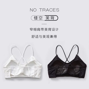 无痕美背抹胸内衣女小胸聚拢可外漏细肩带一体固定杯背心式 文胸罩