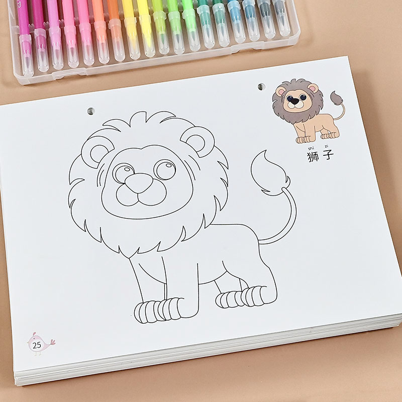 儿童涂色画画本卡通动物图画填颜色3 6岁幼儿园马克笔涂鸦绘画本