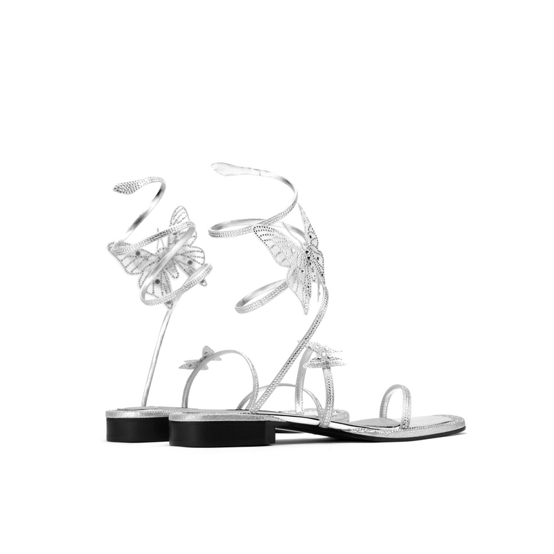 女2025夏新款 JOOC玖诗平底凉鞋 仙女风水钻蝴蝶结凉鞋 高岭之花