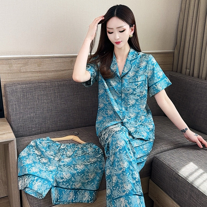 三件套带胸垫可外穿春秋薄家居服套装 短裤 短袖 猫人睡衣女纯棉夏季