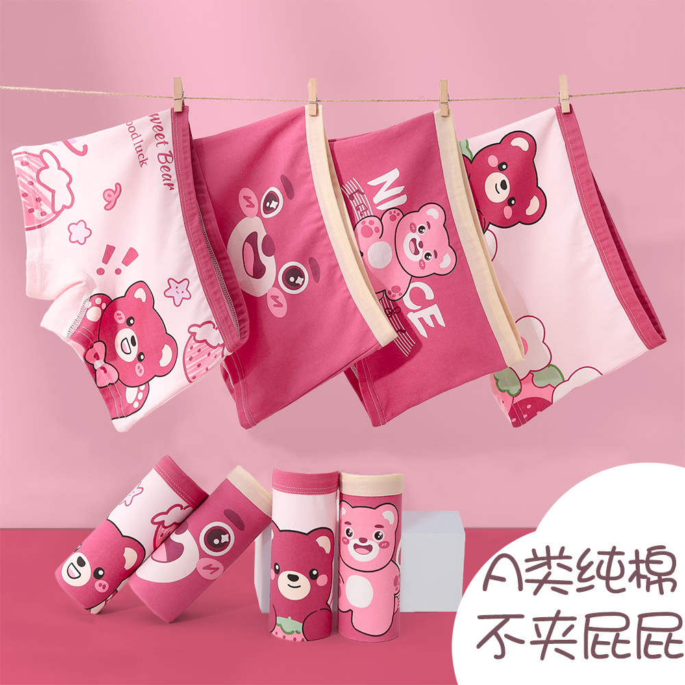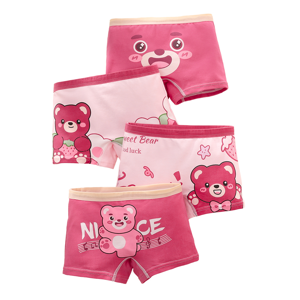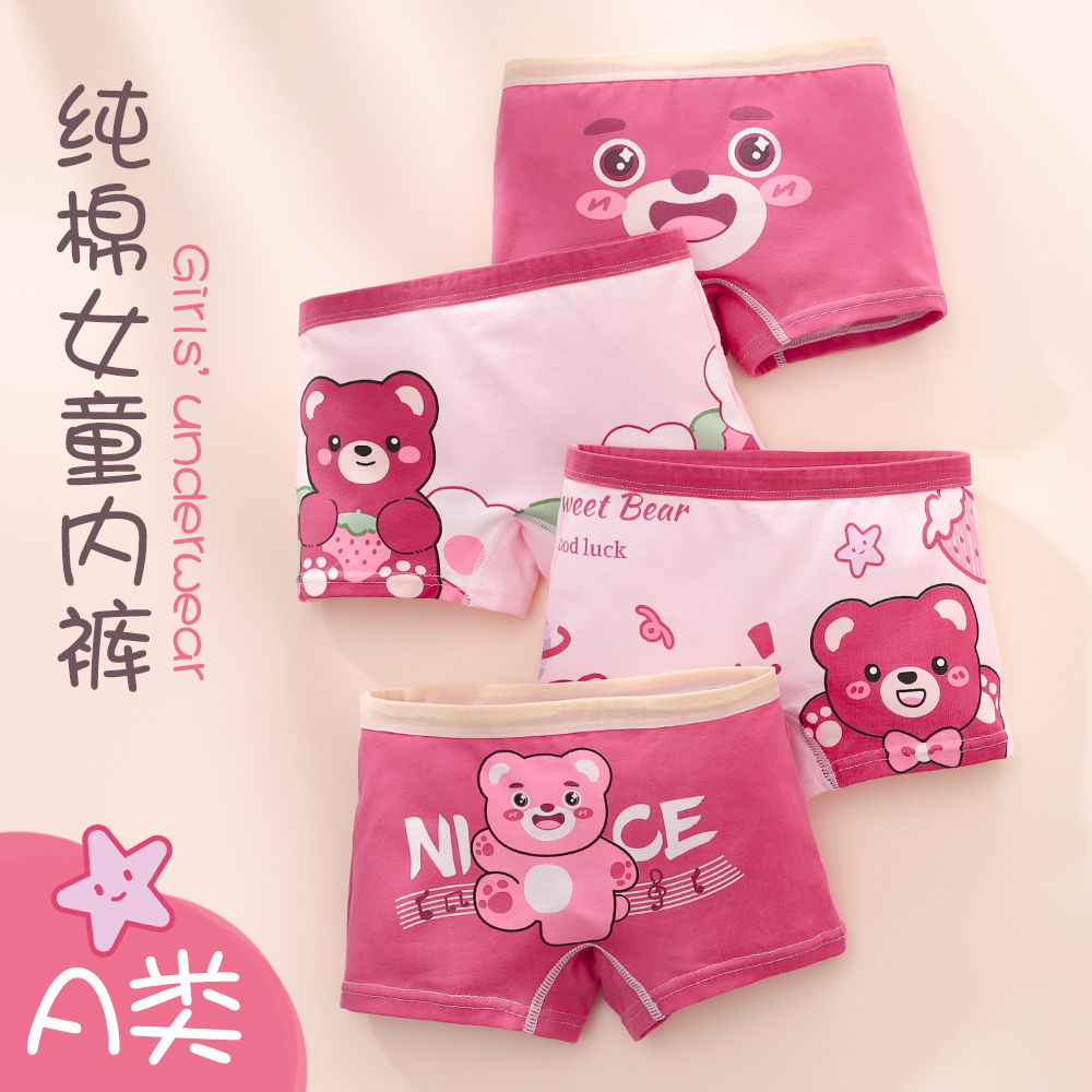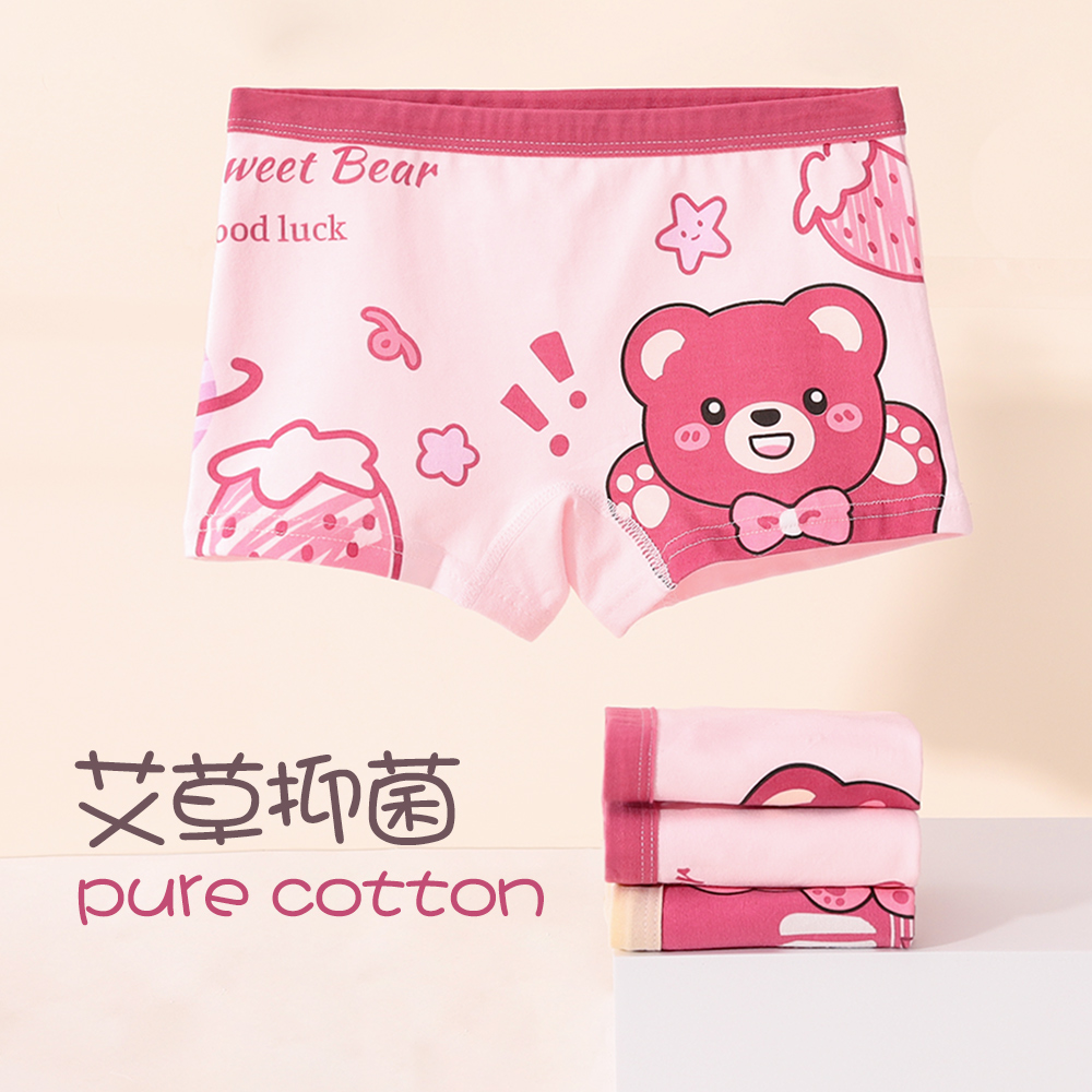 平角底裤 花朵小熊 女款 女童纯棉抗菌裆宝宝女孩透气短裤 儿童内裤