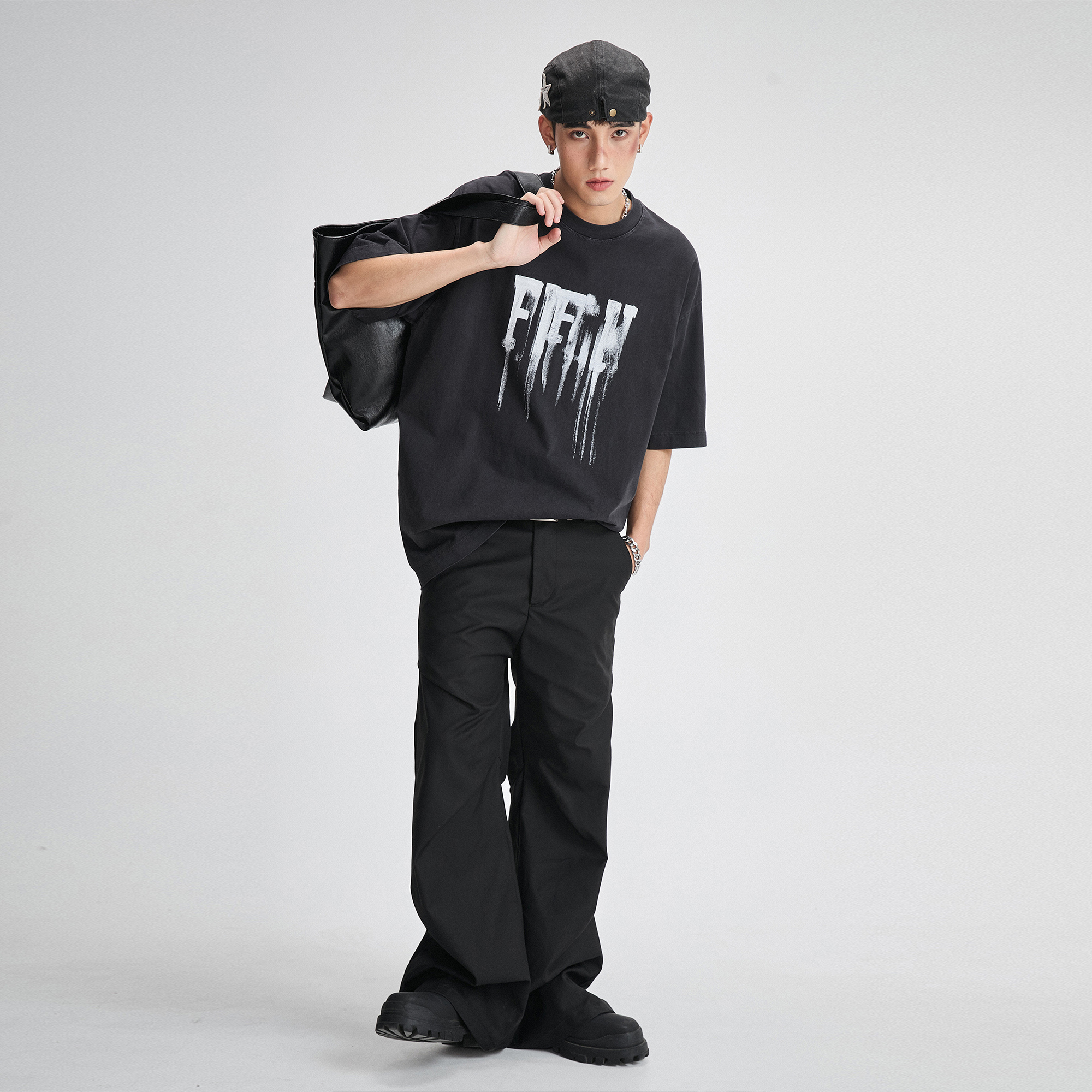 美式 字母涂鸦印花重磅半袖 黑色短袖 2025新款 上衣 t恤男夏季 ALLIN