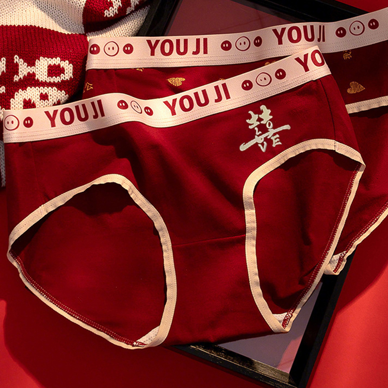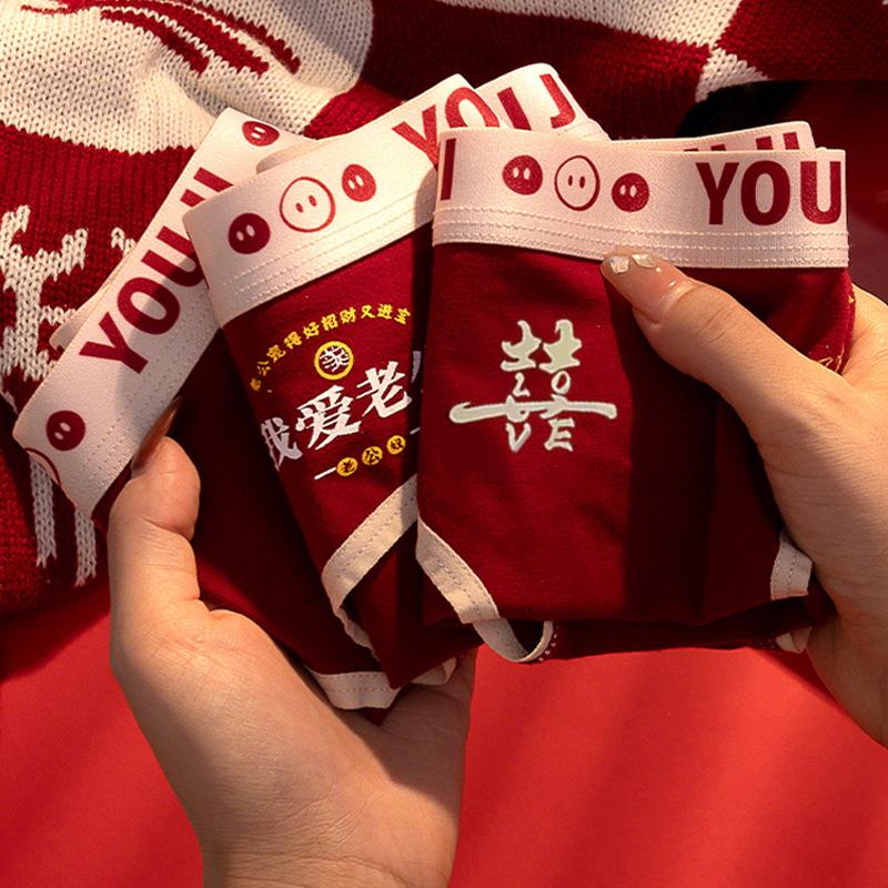 女方陪嫁新婚礼短裤 女款 高级感礼盒 结婚情侣一对袜子男士 红色内裤