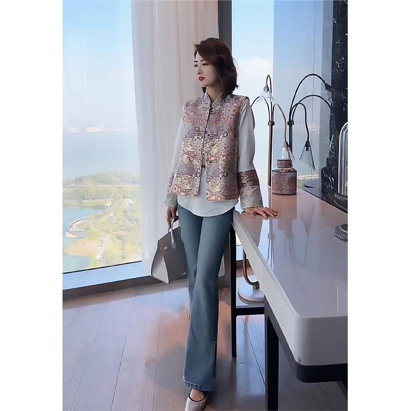 女装 2025年早春新款 国风唐装 套装 盘扣马甲衬衫 今年流行漂亮新中式
