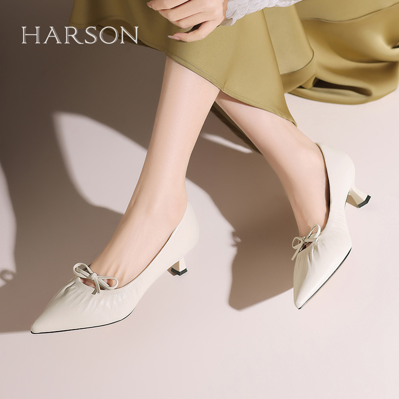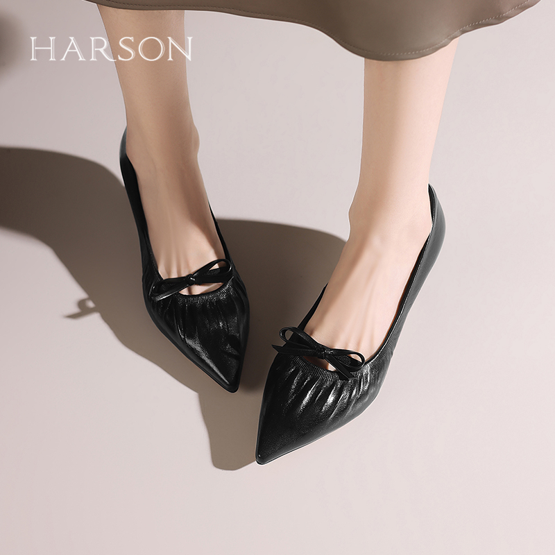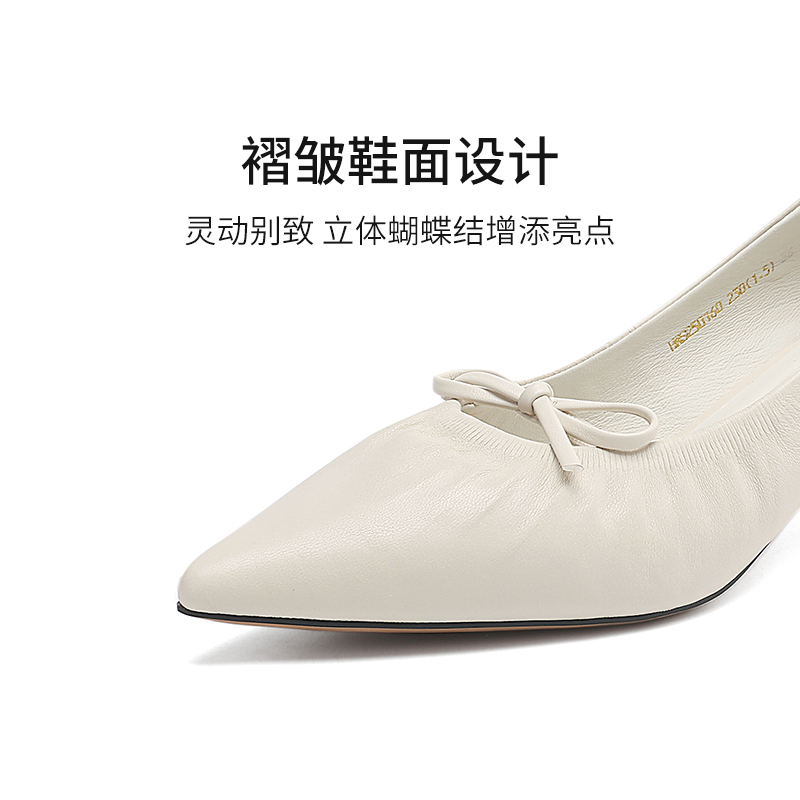 温柔风配裙子豆豆鞋 新款 女2024秋季 星期六真皮平底蝴蝶结浅口单鞋