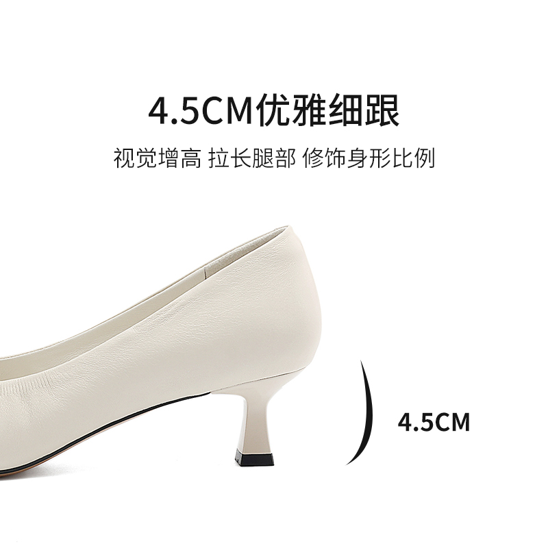 单鞋 羊皮浅口法式 千百度粗高跟鞋 异形跟职业通勤大码 静音系列