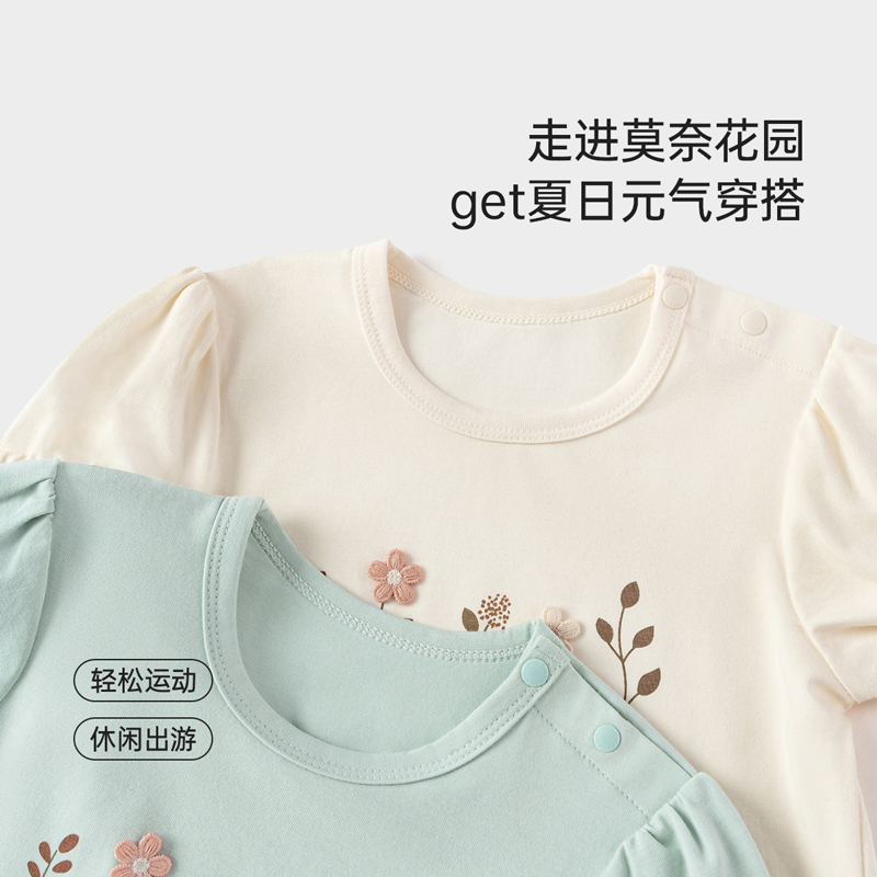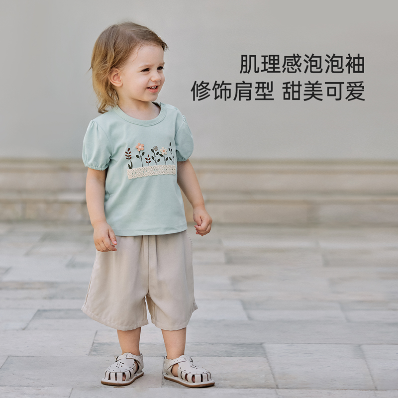 上衣可爱清凉百搭夏装 babylove女宝宝短袖 婴儿泡泡袖 薄款 t恤夏季