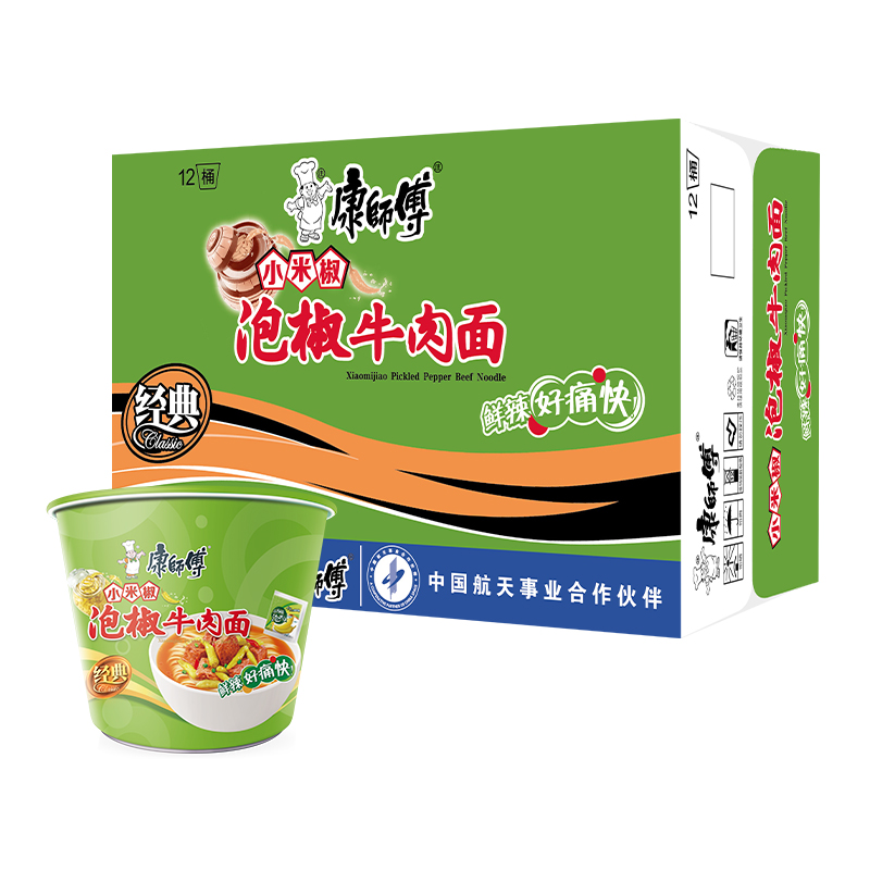 康师傅方便面经典 泡面速食面夜宵旗舰店官网 泡椒牛肉面12桶整箱装