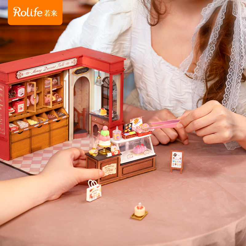 若来手工DIY小屋法式 房子积木 轻甜甜品店制作微缩模型拼装