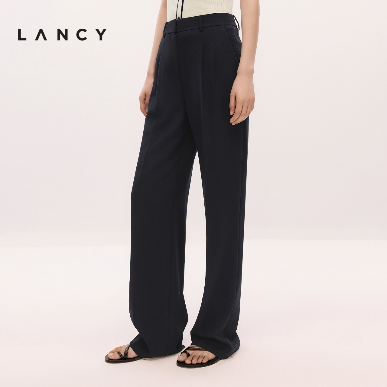 醋酸 裤 LANCY 简约气质直筒西装 女通勤休闲长裤 朗姿2025夏新款