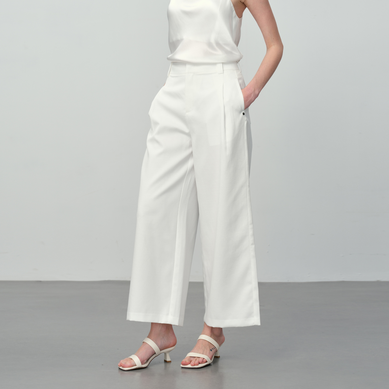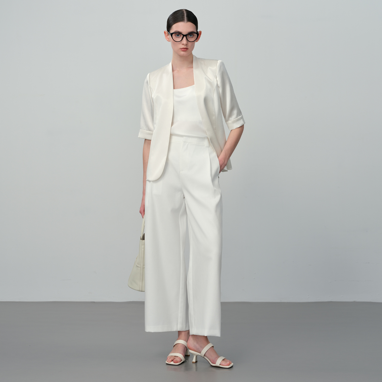 高腰垂感宽松休闲肌理感阔腿裤 白色奶芙冰丝山本裤 女夏2025年新款