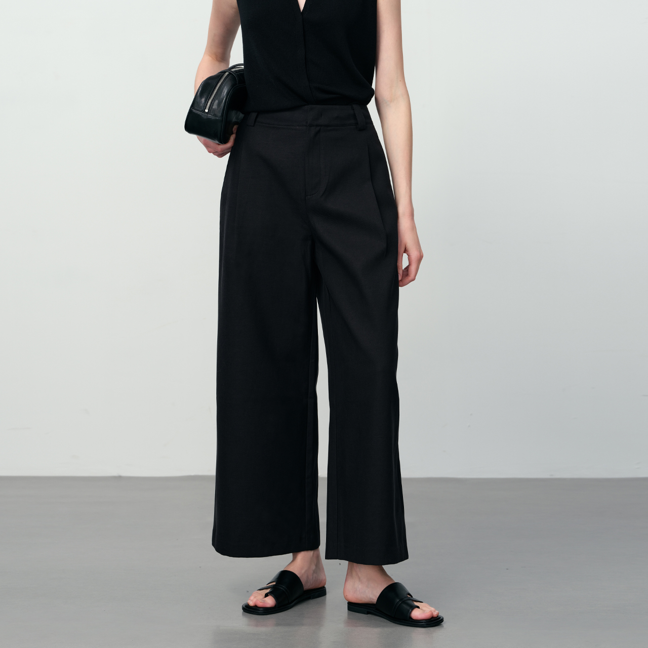 女春秋新款 休闲直筒慵懒松弛感裤 高腰垂感窄版 裤 子 西装 黑色阔腿裤