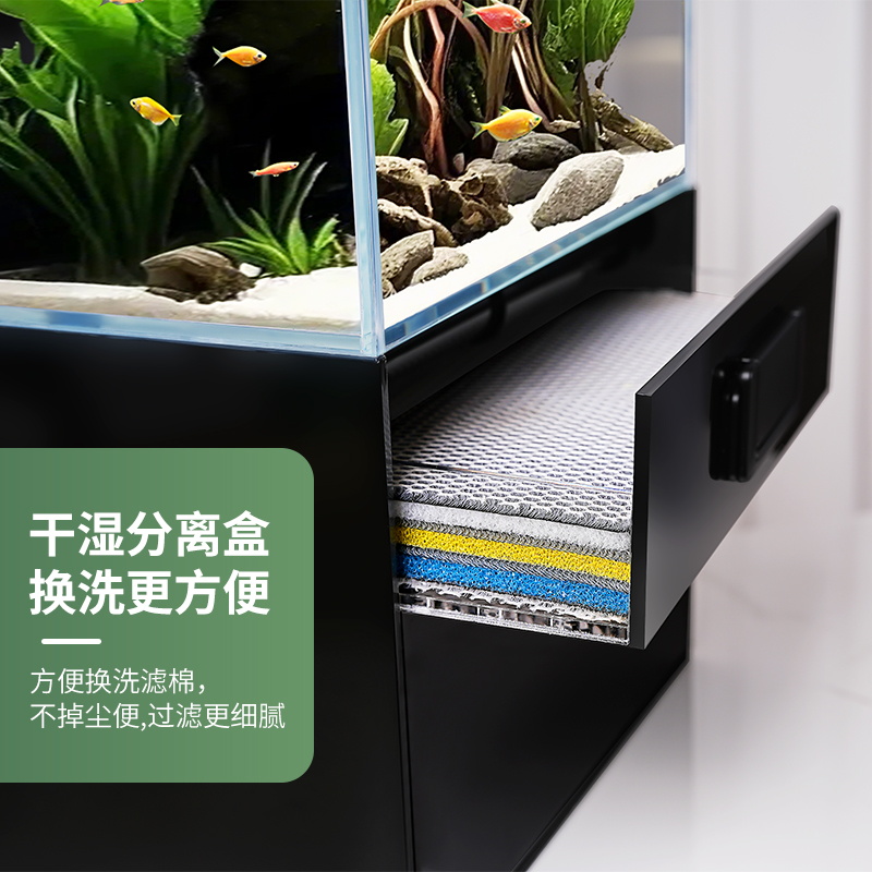 鱼缸过滤制氧一体机客厅2025新款 超白金晶玻璃缸桌面底滤生态缸
