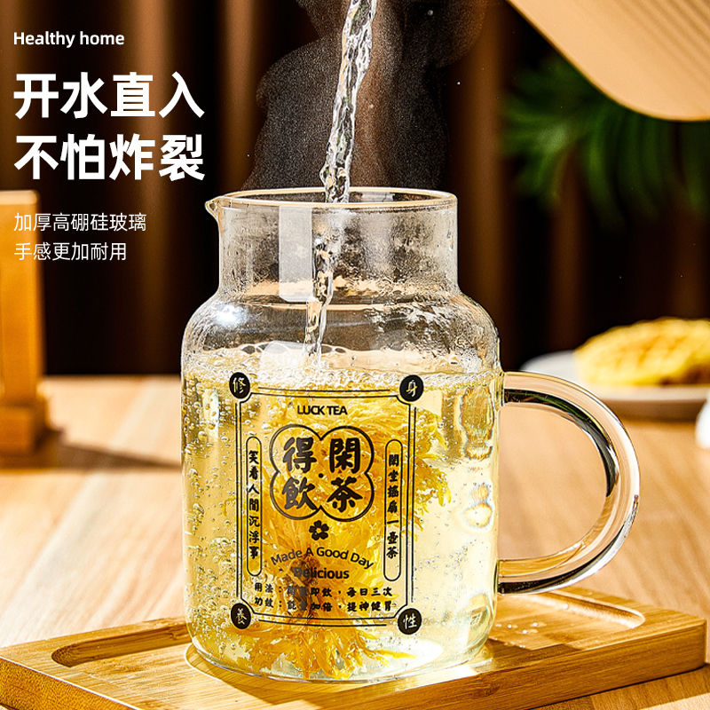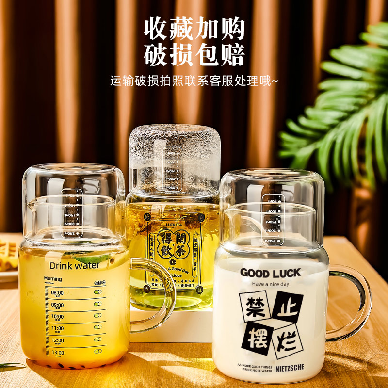 水杯耐高温泡茶杯高硼硅玻璃杯大容量800ml喝水杯子女带盖咖啡杯