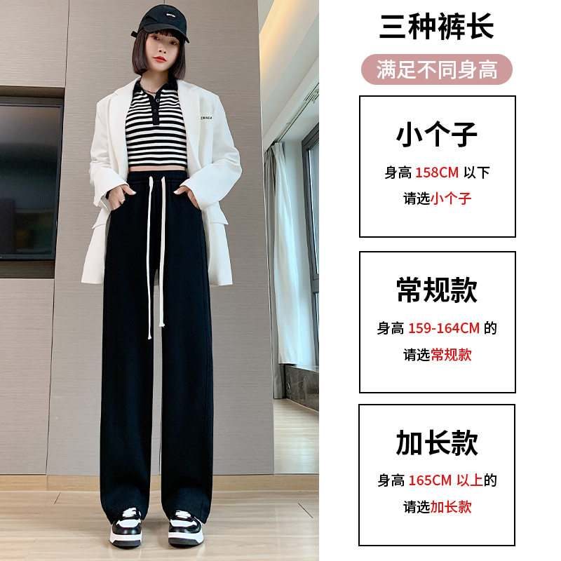 女春秋新款 休闲直筒慵懒松弛感裤 高腰垂感窄版 裤 子 西装 黑色阔腿裤