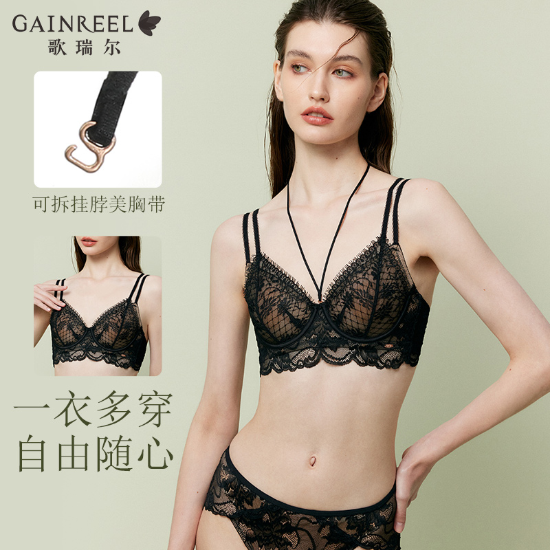 歌瑞尔性感挂脖禁欲系薄款 大胸显小内衣女 透气蕾丝文胸2025新款
