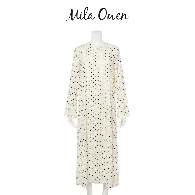 Mila 波点连衣裙09WFO245912 Owen秋冬日系气质圆领长袖