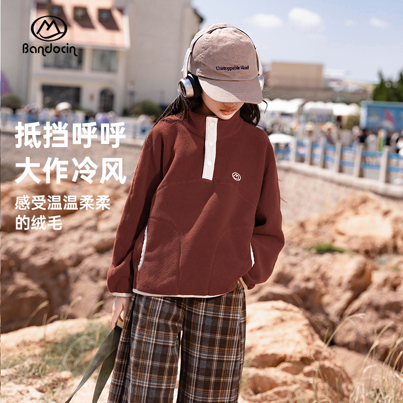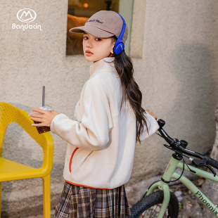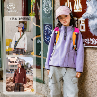 加厚上衣 儿童冬季 半度闲女童立领加绒卫衣洋气秋冬装 中大童25新款