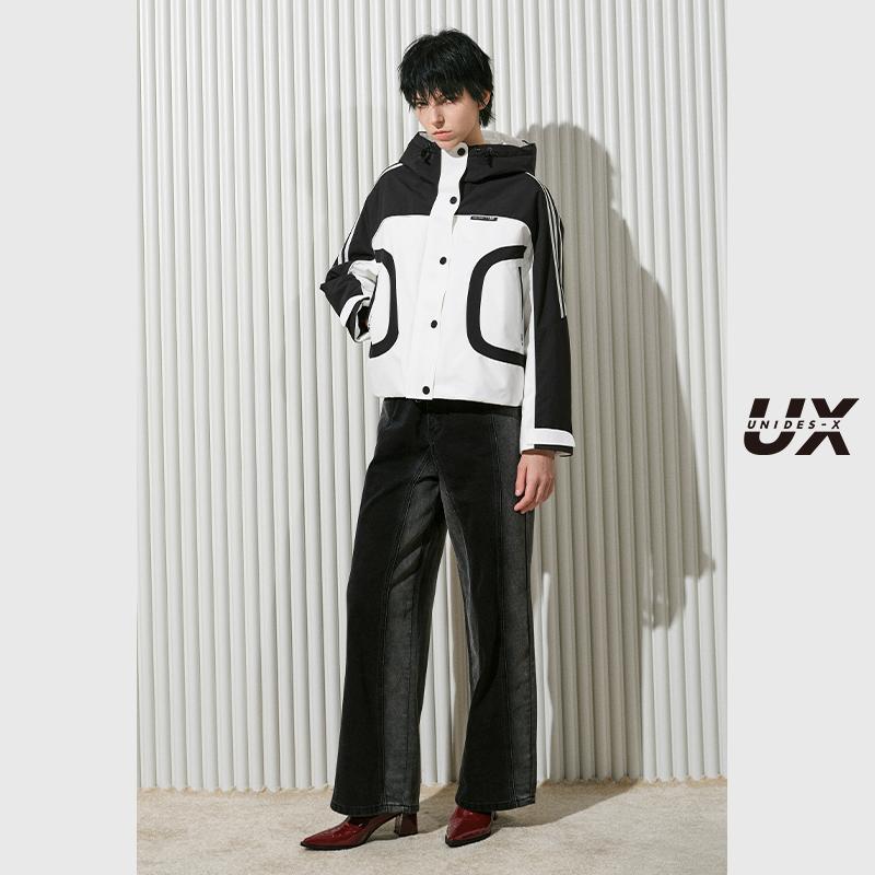 毛边侧分割线高腰阔腿显瘦牛仔裤 复古水洗个性 女 新款 ONLY2025秋季