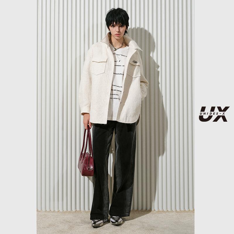 2025冬新款 王安宇同款 宽松弧形裤 男做旧复古阔感弯刀裤 森马牛仔裤