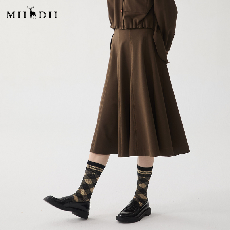 谜底A字型半身裙冬季 通勤风磨毛保暖伞型半裙女244MB1627 新品