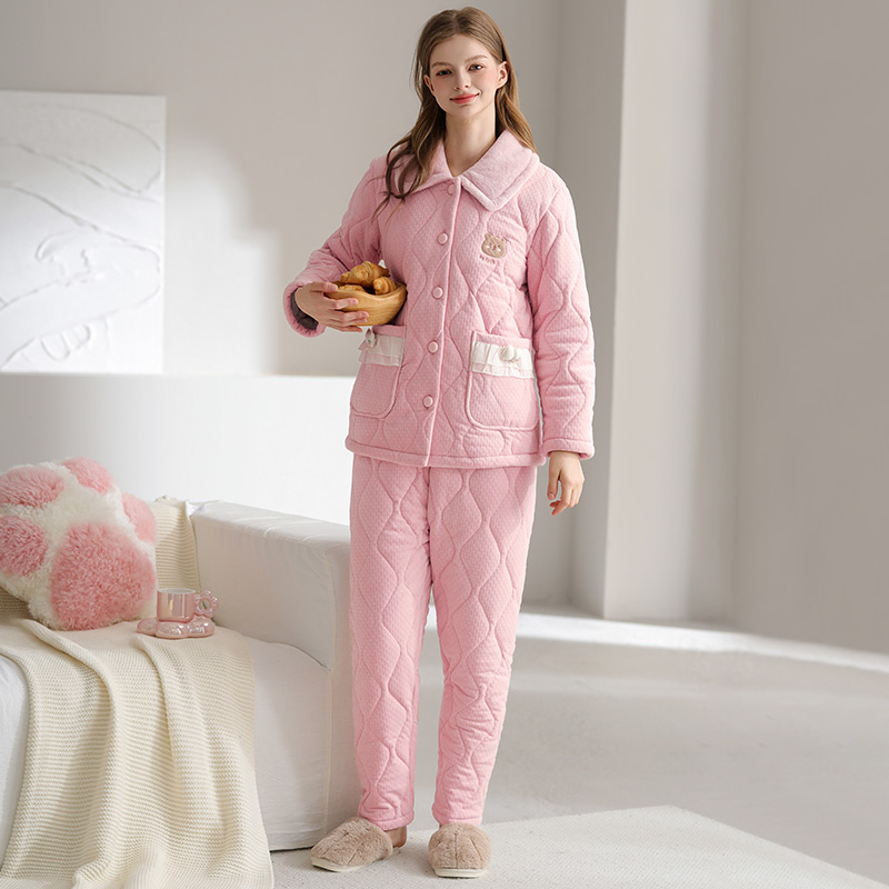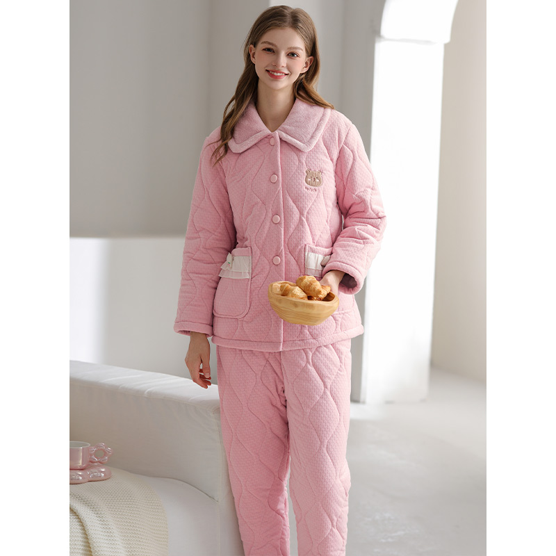 法兰绒家居服套装 芬腾秋冬珊瑚绒睡衣女保暖加厚加绒韩版 清仓