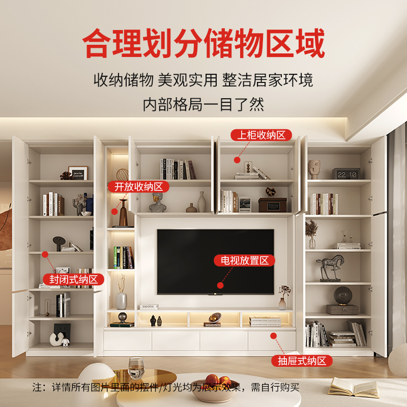 顾家家居定制背景墙电视柜一体客厅满墙电视柜储物柜卡塔尼亚