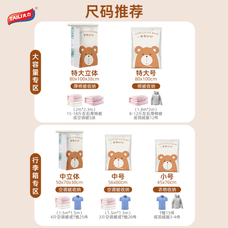 太力抽真空收纳袋压缩袋衣服被子专用棉被羽绒服电泵衣物整理袋子