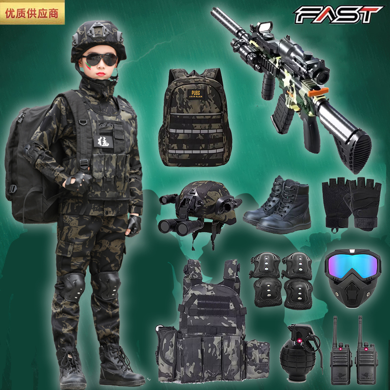 幼儿园演出户外夏令营军训玩具枪 备夏季 儿童特种兵迷彩服装 全套装