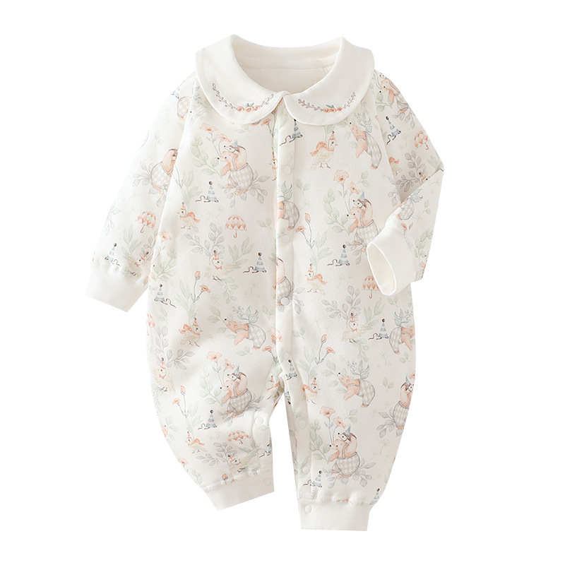 女宝宝婴儿衣服秋冬季 夹棉连体衣无骨纯棉保暖棉衣翻领爬爬服哈衣