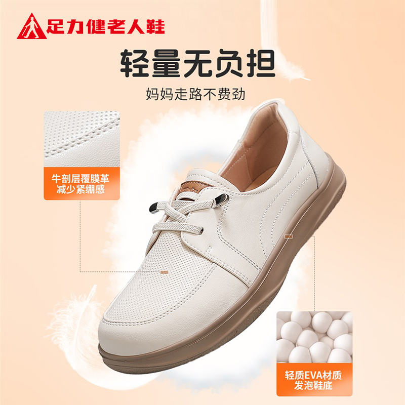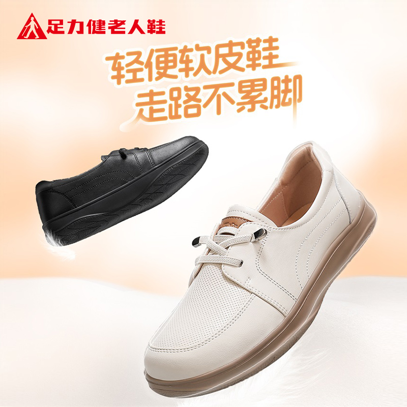 官方旗舰女鞋 一脚蹬平底妈妈奶奶鞋 2025新款 皮鞋 秋季 足力健老人鞋