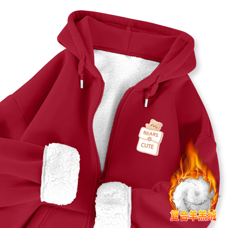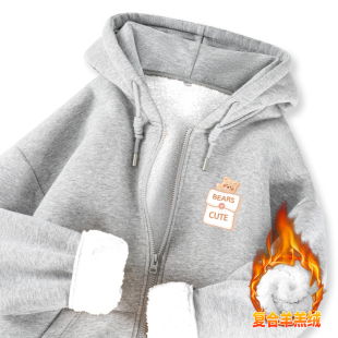 KHV真维斯加厚加绒卫衣女连帽2025新款 外套女 宽松秋冬羊羔绒开衫
