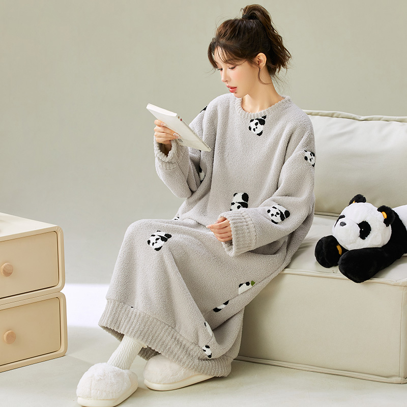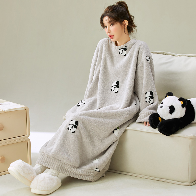 连衣裙休闲睡衣 小熊家居服宽松大码 珊瑚绒睡裙女秋冬季 时尚
