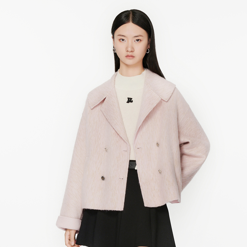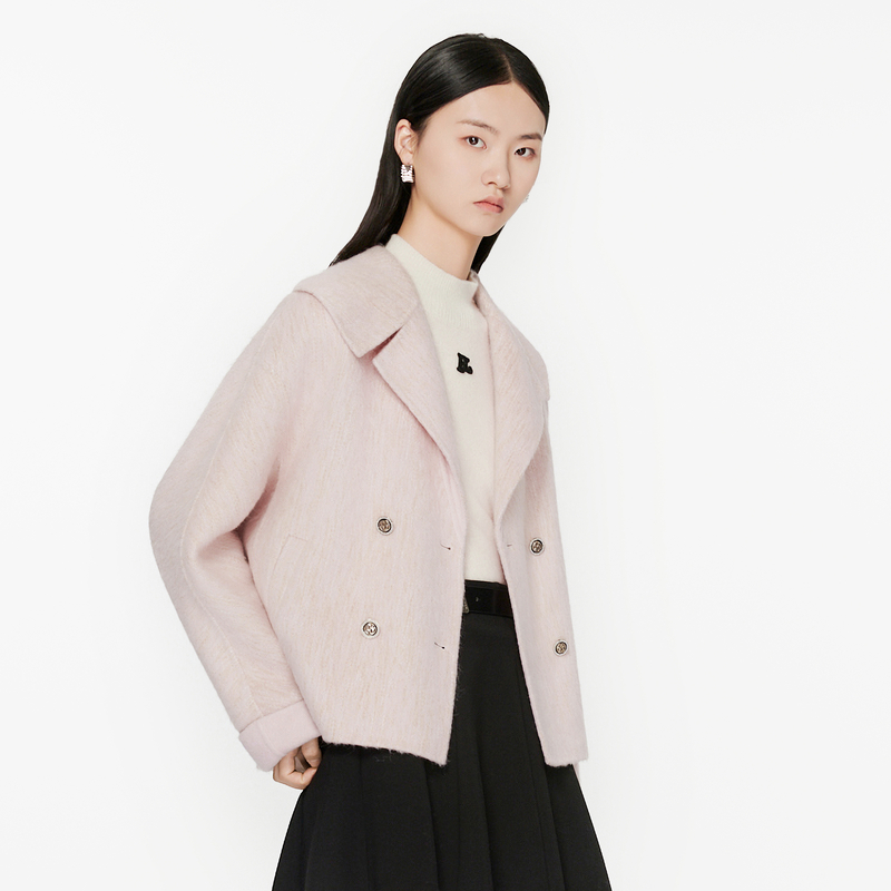 圆领大衣女小个子气质毛呢外套 高端羊毛双面呢短款 2025年春季 新款